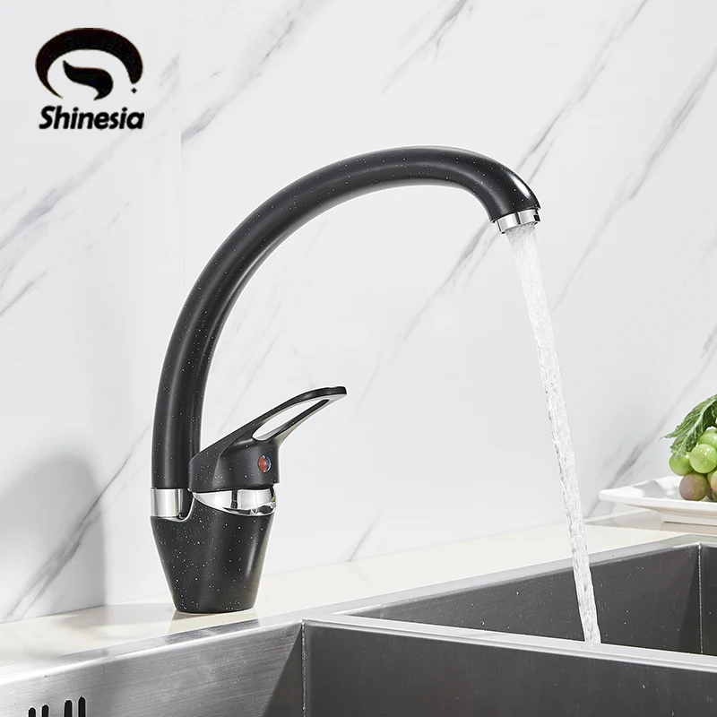 Name: Shinesia-grifo de cocina negro con puntos, mezclador de agua fría y caliente, con una sola manija, rotación de 360 grados, de latón, grúa